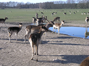 Seit 1991 halten wir Damwild in einem 20 ha großen Gehege. Das Wild wird artgerecht gehalten, was bedeutet, dass es während der gesamten Vegetationszeit sich selbst ernährt und nur außerhalb dieser mit Heu und Hackfrüchten von uns versorgt wird. Die Besonderheit einer Gatterwild-haltung besteht u.a. darin, dass auch außerhalb der gesetzlichen Jagd-zeiten mit entsprechender Sachkunde Tiere entnommen werden dürfen. Damit ist auch gesichert, dass ganz-jährig frisches Wildfleisch und daraus hergestellte Produkte unseren Kunden angeboten werden.